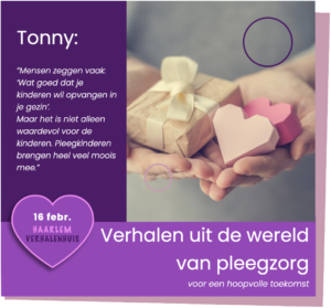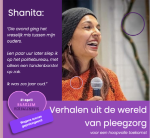 - Dinsdag 24 maart 2026: aanvang 20.00 uur, einde 22.00 uur. Tickets van €5,- zijn te bestellen via Verhalenhuis Haarlem- Levensverhalen uit de pleegzorg